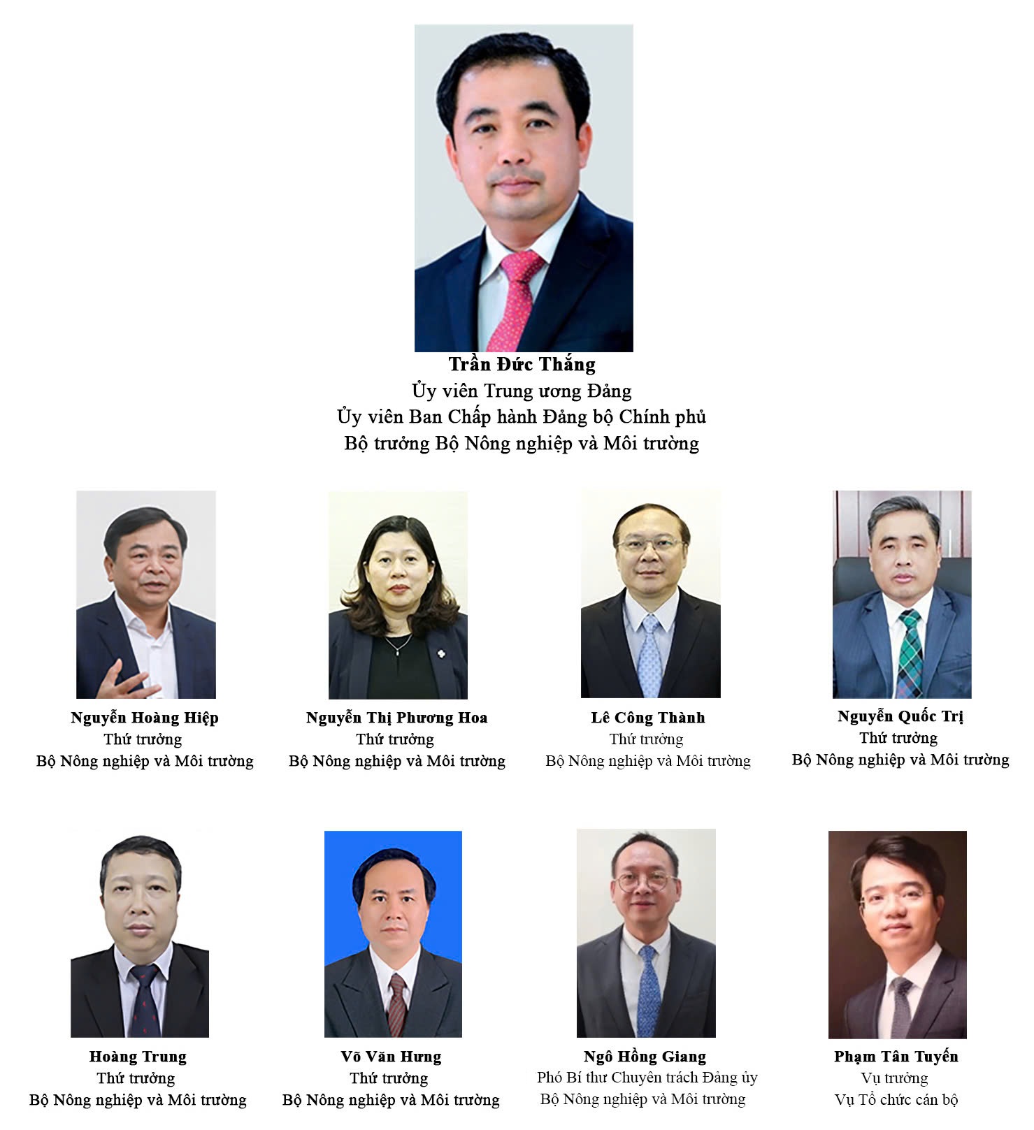 1. Đồng chí Trần Đức Thắng, Ủy viên Trung ương Đảng, Ủy viên Ban Chấp hành Đảng bộ Chính phủ, Bộ trưởng Bộ Nông nghiệp và Môi trường.